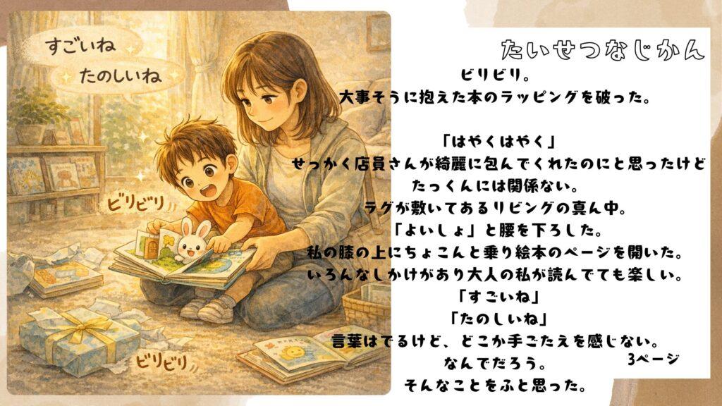 この記事では、ページをめくる手を止めた瞬間に見えた、子供の純粋な世界と「沈黙の価値」を物語形式でお伝えします。