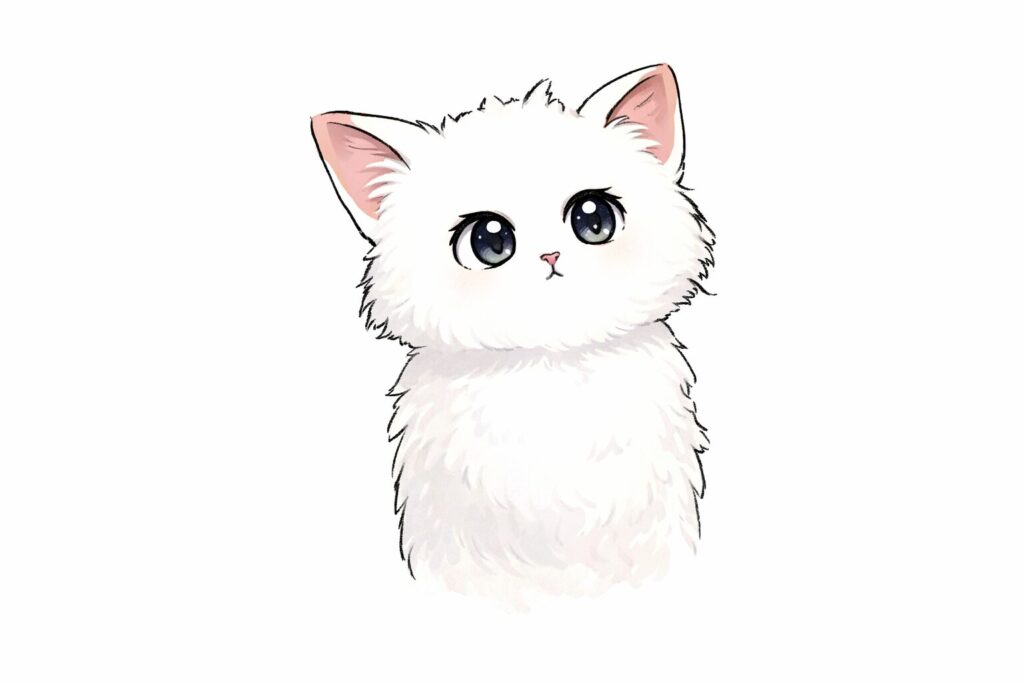真っ白な綿毛(パフ)のようにふわふわな体と、吸い込まれそうな大きな瞳が特徴のこねこです。