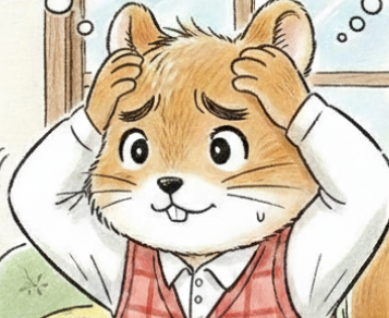頭を抱えるリスのパパ